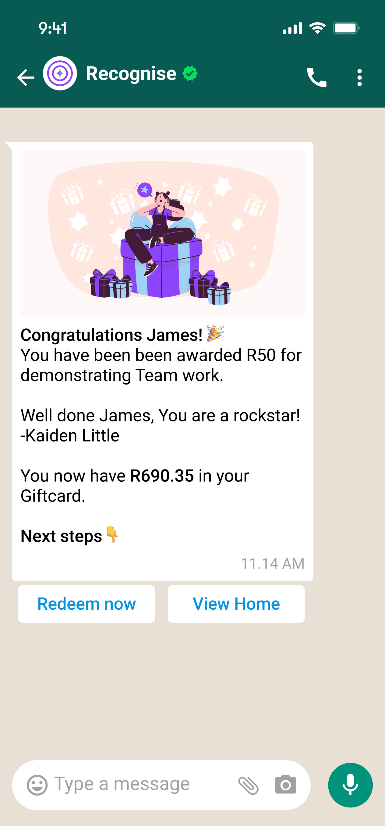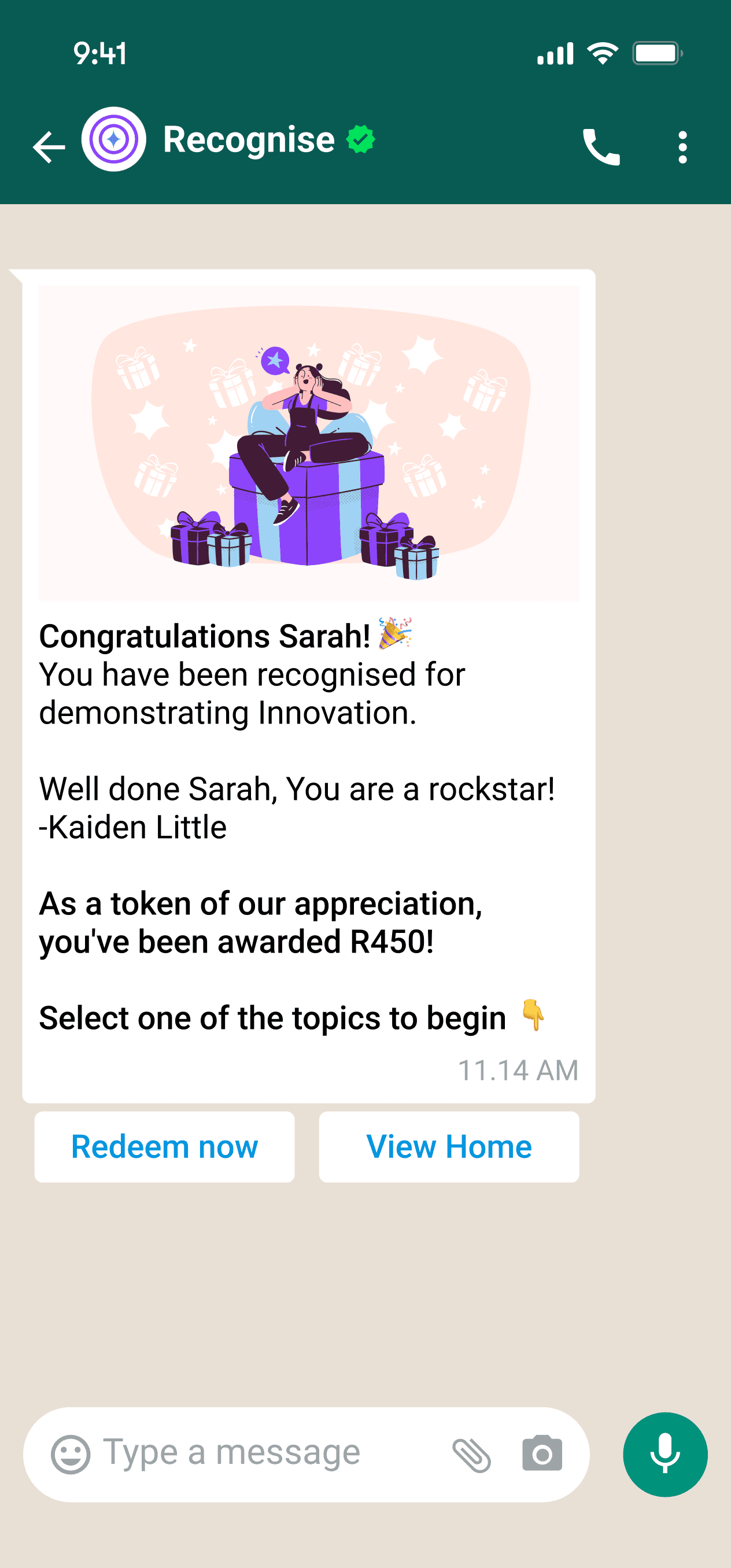 No apps, no friction. Use our simple online platform or send recognition directly through WhatsApp.