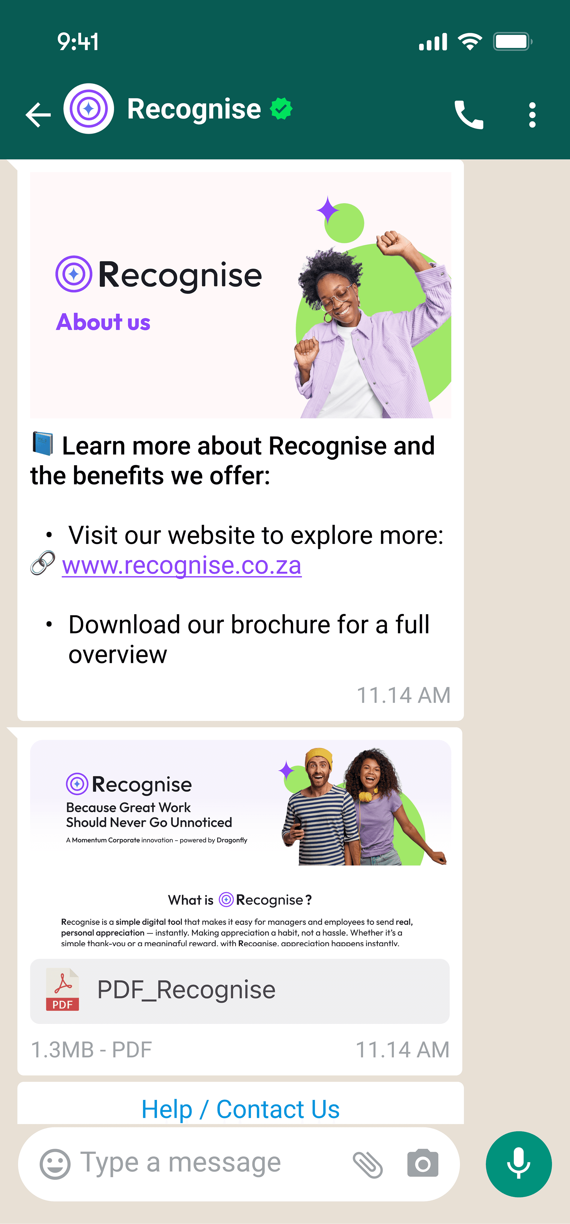 We’ll deliver it directly to the person you want to recognise, whether they’re within your organisation or part of your extended network, via WhatsApp or email.